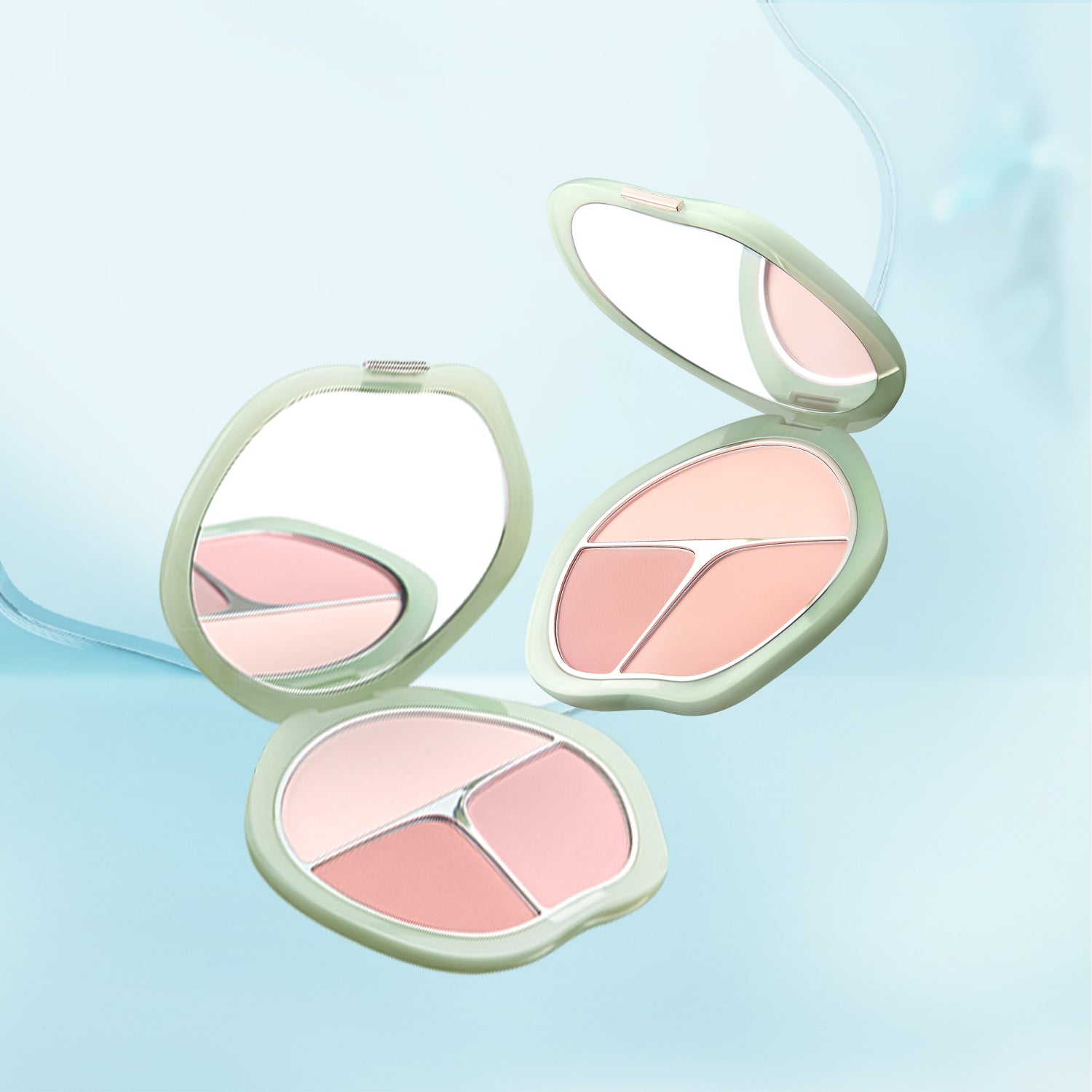 異なる明度と彩度の3色が絶妙にブレンドされ、ナチュラルで美しいグラデーションを作り出します。高発色で肌になじみやすく、長時間続く色持ちが特徴。ソフトフォーカス効果で毛穴も目立たず、ナチュラルな血色感を与えてくれます。